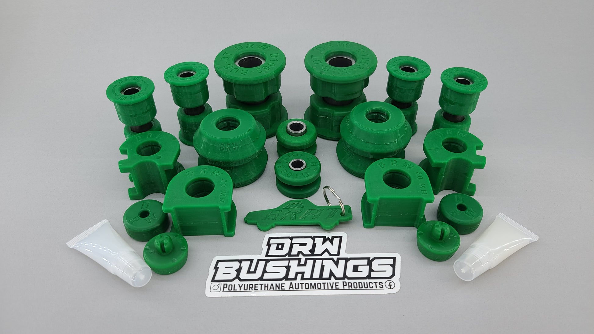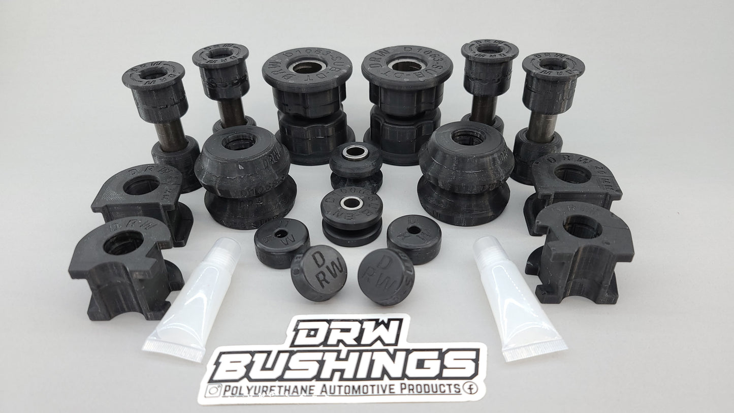 Liability. All products sold or manufactured by DRW Bushings are intended for off-road use only. Customer assumes all liability in assuring that parts are installed correctly, maintained, and not modified or altered in any way. DRW Bushings is not responsible or liable for any accidents, injuries, or deaths that may occur from the use of any products offered. Suspension modifications may change the dynamics and stability characteristics of the vehicle. Ensuring prompt wheel alignment after suspension modifications is critical and the sole responsibility of the customer.