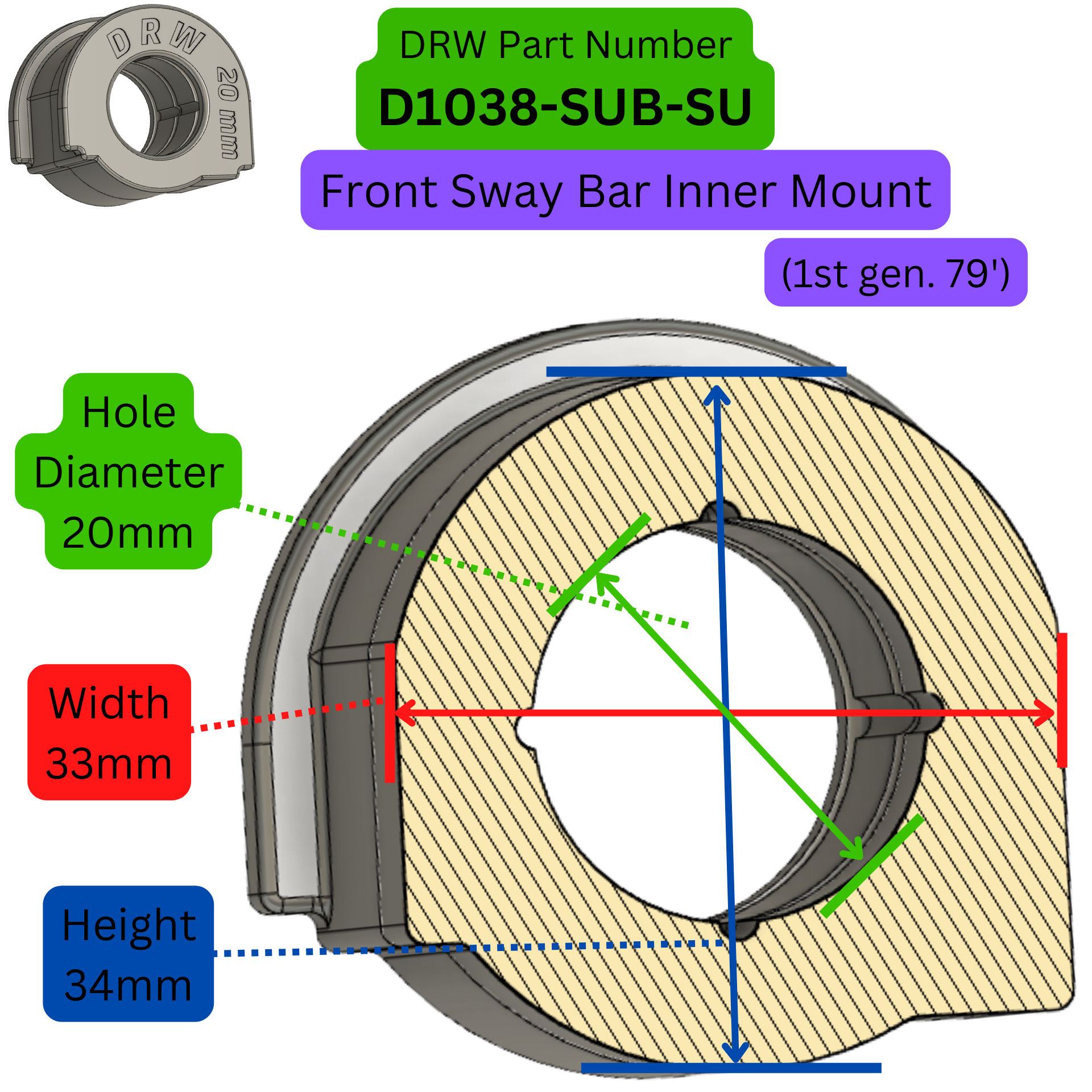 Liability. All products sold or manufactured by DRW Bushings are intended for off-road use only. Customer assumes all liability in assuring that parts are installed correctly, maintained, and not modified or altered in any way. DRW Bushings is not responsible or liable for any accidents, injuries, or deaths that may occur from the use of any products offered. Suspension modifications may change the dynamics and stability characteristics of the vehicle. Ensuring prompt wheel alignment after suspension modifications is critical and the sole responsibility of the customer.