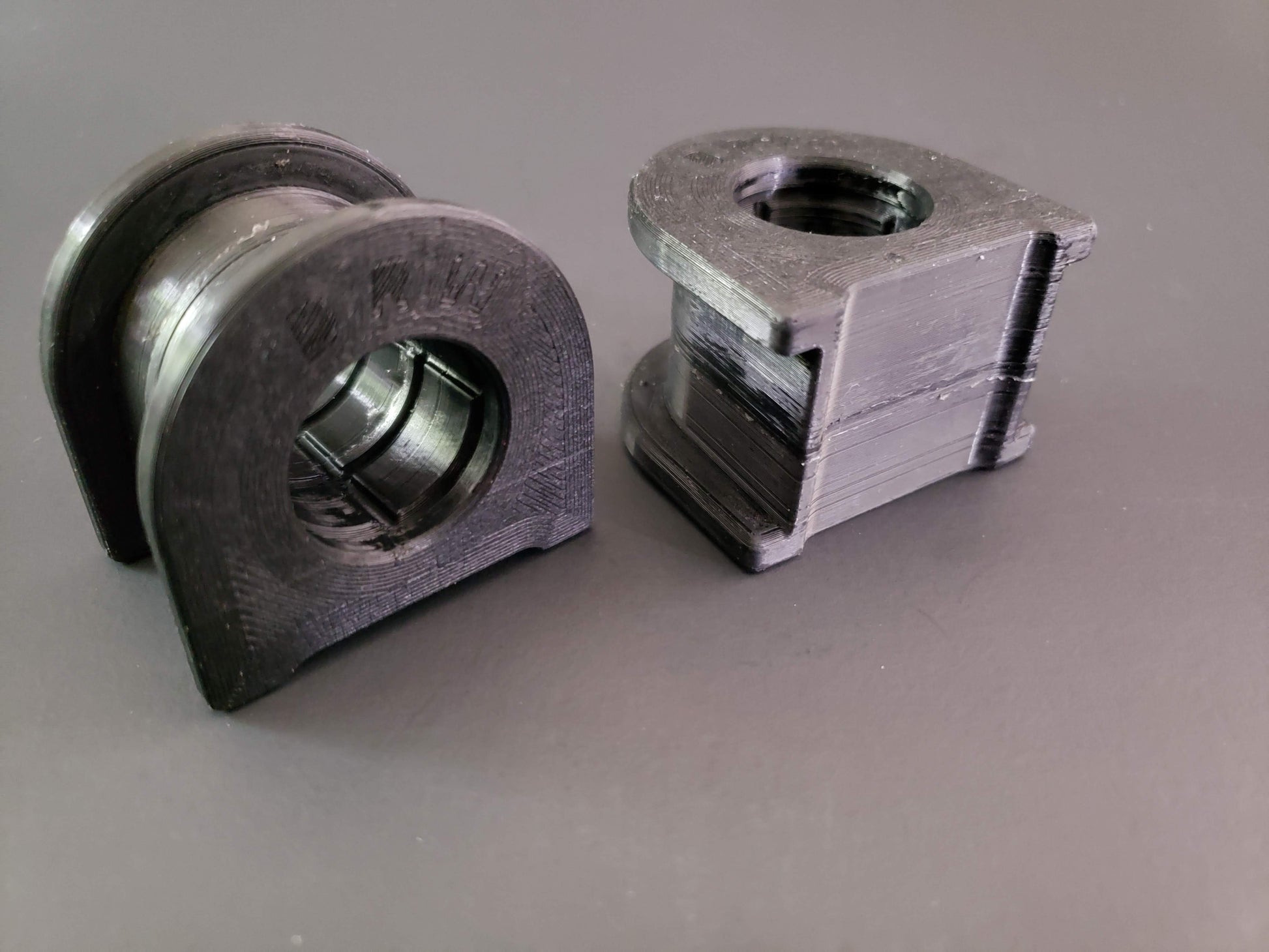 Made of 80A polyurethane rubber. More durable and crack resistant than OEM rubber. Although polyurethane is still flexible, it is slightly more firm than the factory rubber. This will result in sharper/better handling, but it can also cause a slight increase in vibration transfer.