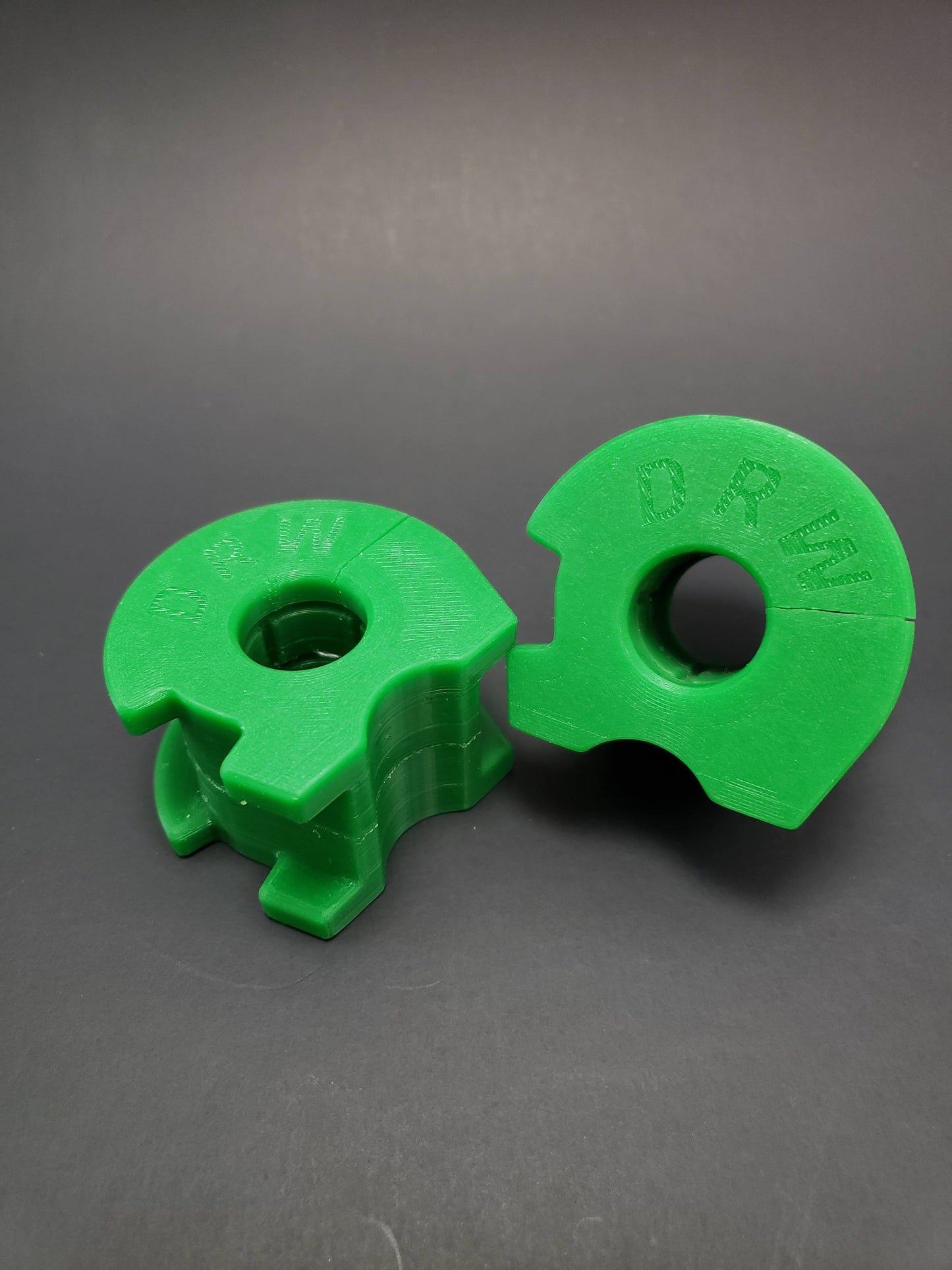 Made of 80A polyurethane rubber. More durable and crack resistant than OEM rubber. Although polyurethane is still flexible, it is slightly more firm than the factory rubber. This will result in sharper/better handling, but it can also cause a slight increase in vibration transfer.