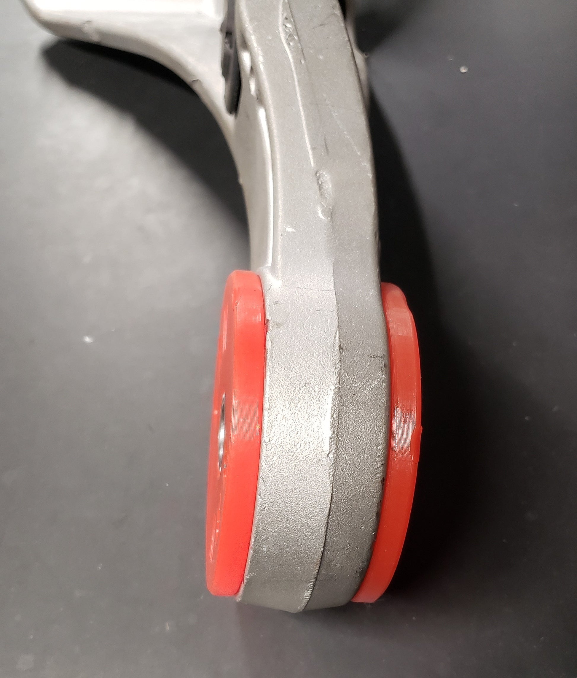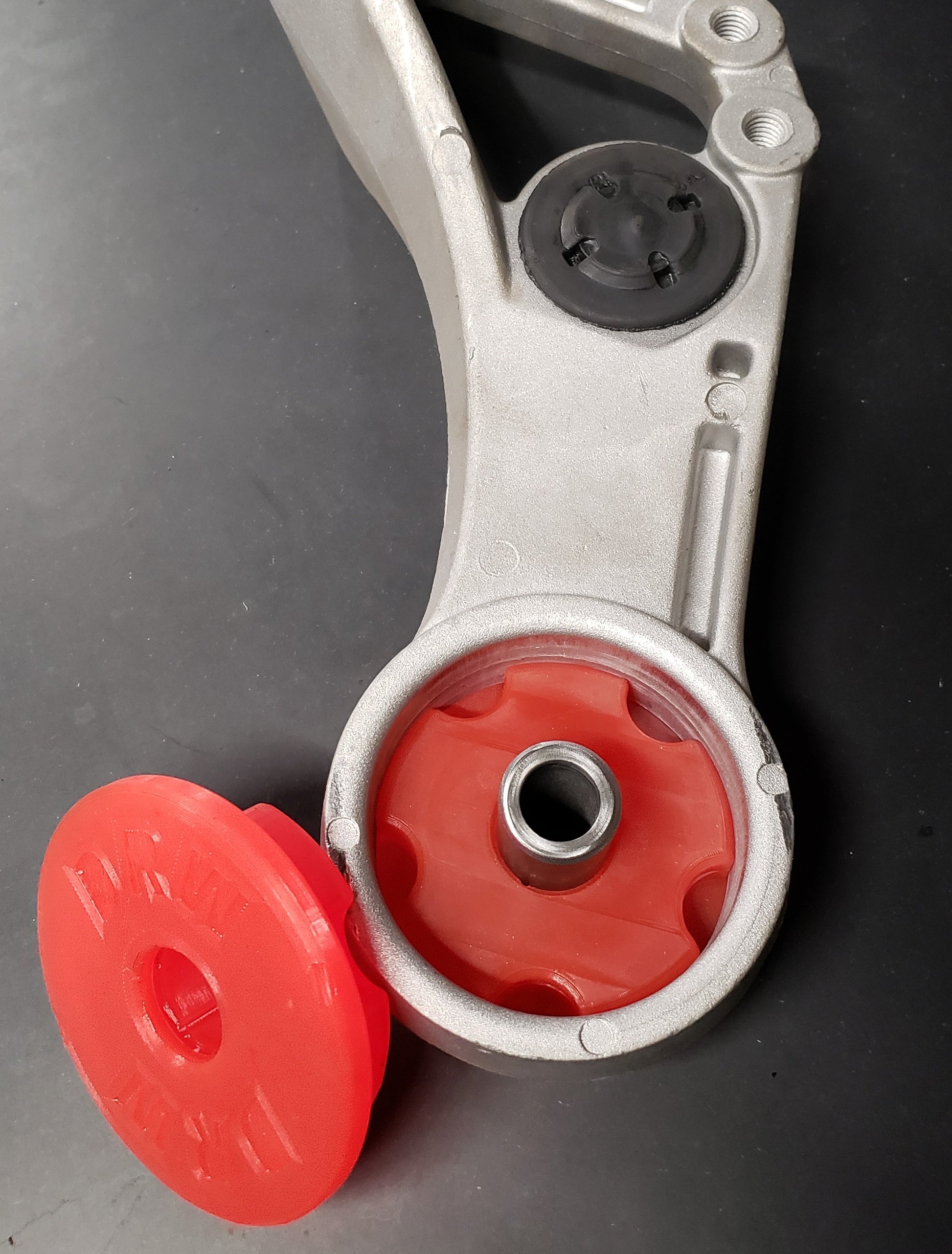 Made of 70A polyurethane rubber. More durable and crack resistant than OEM rubber. Although polyurethane is still flexible, it is slightly more firm than the factory rubber. This will result in sharper/better handling, but it can also cause a slight increase in vibration transfer.